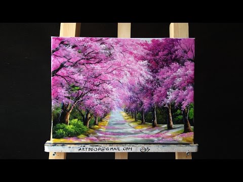 Beautiful Cherry Blossoms Road Acrylic Painting (canvas size: 12 x 16″)