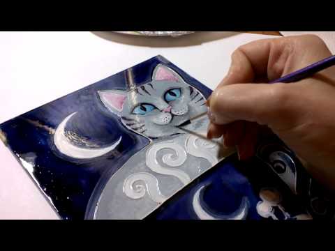 «Чаепитие с котом» витражная роспись с Екатериной Захваткиной