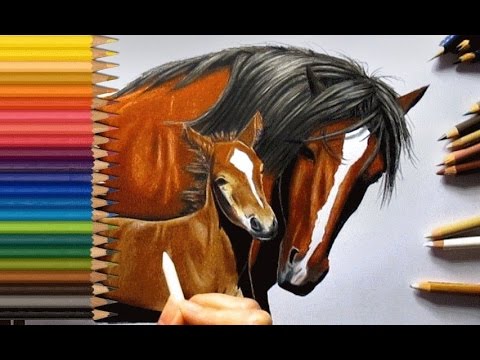 Colored Pencil Drawing: Horse with Baby