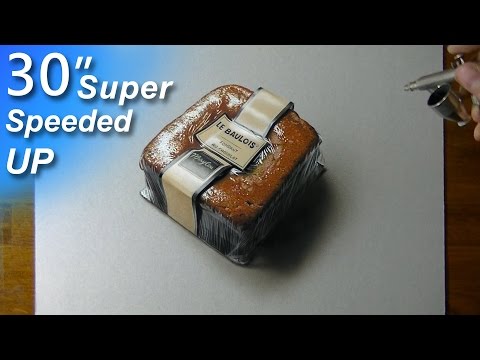 How to draw a chocolate cake with mixed media, super speed up time lapse video
