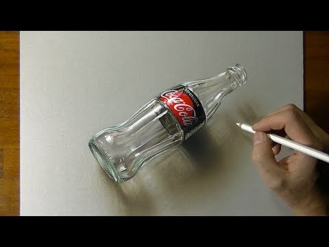 How to draw a hyperrealistic bottle of an empty glass bottle of Coca Cola Zero.
