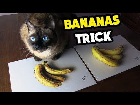 Zeichnung gegen echte Bananen — Katzenreaktion