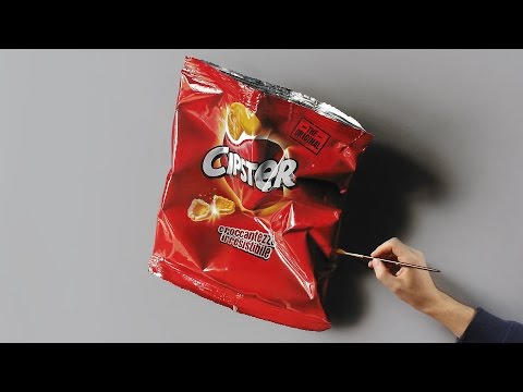 3D Oil and Acrylic Painting on Canvas, Minimalistic and Hyper-realistic Still Life of an empty bag of Cipster chips by Marcello Barenghi http://www.marcellobarenghi.com