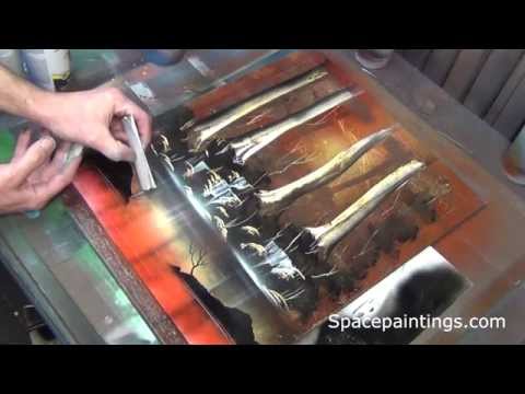 Spray paint with Brandon McConnell and learn to create this forest scene with amazing trees. Get my paintings and instructional DVDs here http://www.spacepaintings.com/spraypaintart.html join us on facebook at "Spacepainting Universe" here https://www.facebook.com/groups/397230293625813/