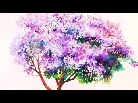 How to paint a Jacaranda tree in bloom with watercolor