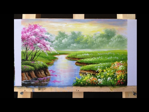 How to Paint Riverbank with Acrylics Lesson 2