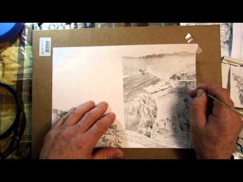 В этом уроке показано, как рисовать черно — белую, разворотную, на две книжные полосы иллюстрацию в технике «гризайль». Композиция иллюстрации построена по принципу трепхплановой воздушной перспективы.Изображает летний знойный день, на первом плане стадо коров , на втором плане купание в пруду детей . С помощью изображения резких теней на земле передано настроение жаркого дня .