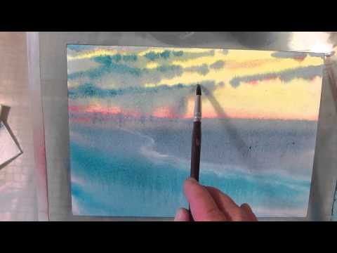 Как рисовать по мокрому зимний вечер в степи. Урок 47