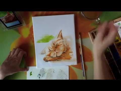 Картина акварелью. Сон рыжего кота.