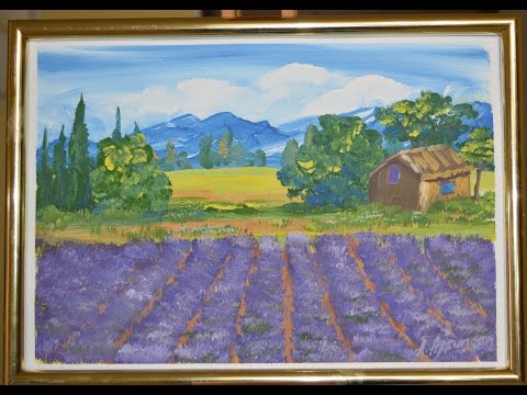 Лавандовое поле гуашью. Правополушарное рисование.