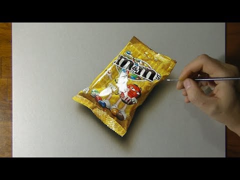 How to draw a bag of M&M’s Peanut — 3D drawing by Marcello Barenghi