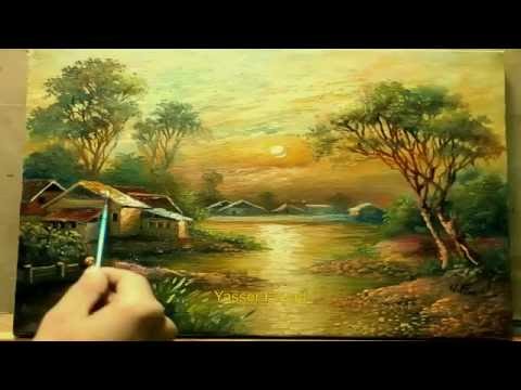 Oil Painting Landscape Moonlight By Yasser Fayad ياسر فياض