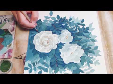 В этом видео я рисую белый шиповник используя технику двойного мазка, смешивая цвета на палитре. Здесь я рисую листья. В первой части я выполнила сами цветы кистью со срезом http://youtu.be/Rp339YtBofM