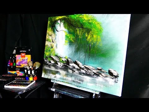 THEME: WATERFALL| SIMPLE AND SLOW ACRYLIC PAINTING TECHNIQUES | PARADISE | DRANITSIN
