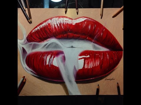 Realistic smoking red lips drawing timelapse