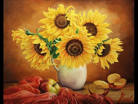 Рисуем цветы Подсолнухи натюрморт