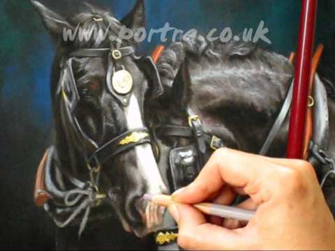 Speed painting — Shire horses in pastel
