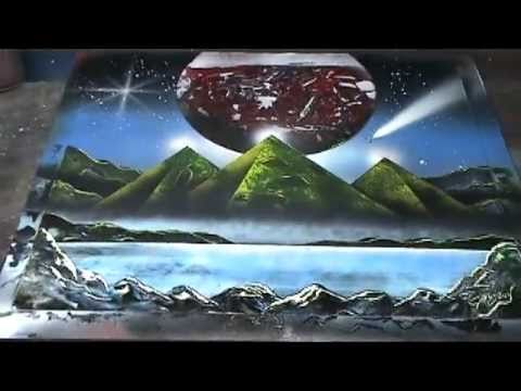 Making pyramids-Painting #3 Spray paint art Step by Step DVD. Get this DVD here http://www.spacepaintings.com/instructional_videos.html
