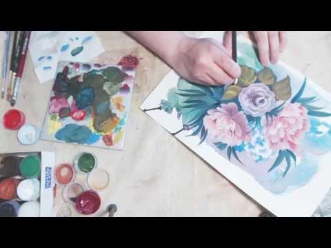 В этом видео я рисую, используя гуашь и акварель. Еще я применяю несколько кисточек: китайскую кисть, плоскую кисть со срезом, кисть "кошачий язык", круглую колонковую кисть.