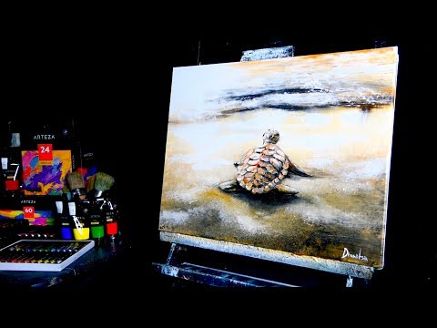 TURTLE ON THE BEACH | DETAILED ACRYLIC PAINTING TECHNIQUES | DRANITSIN
