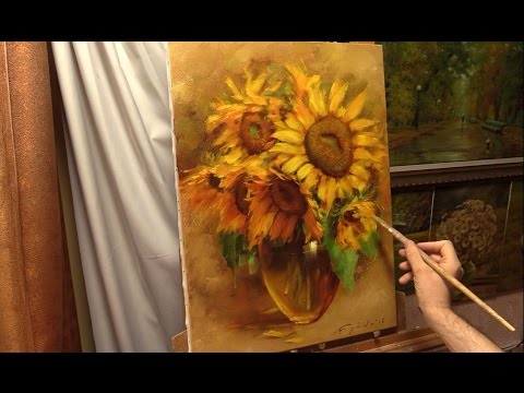 Янтарные подсолнухи. Amber sunflowers. Alla Prima. Process of creating oil painting from Oleg Buiko.